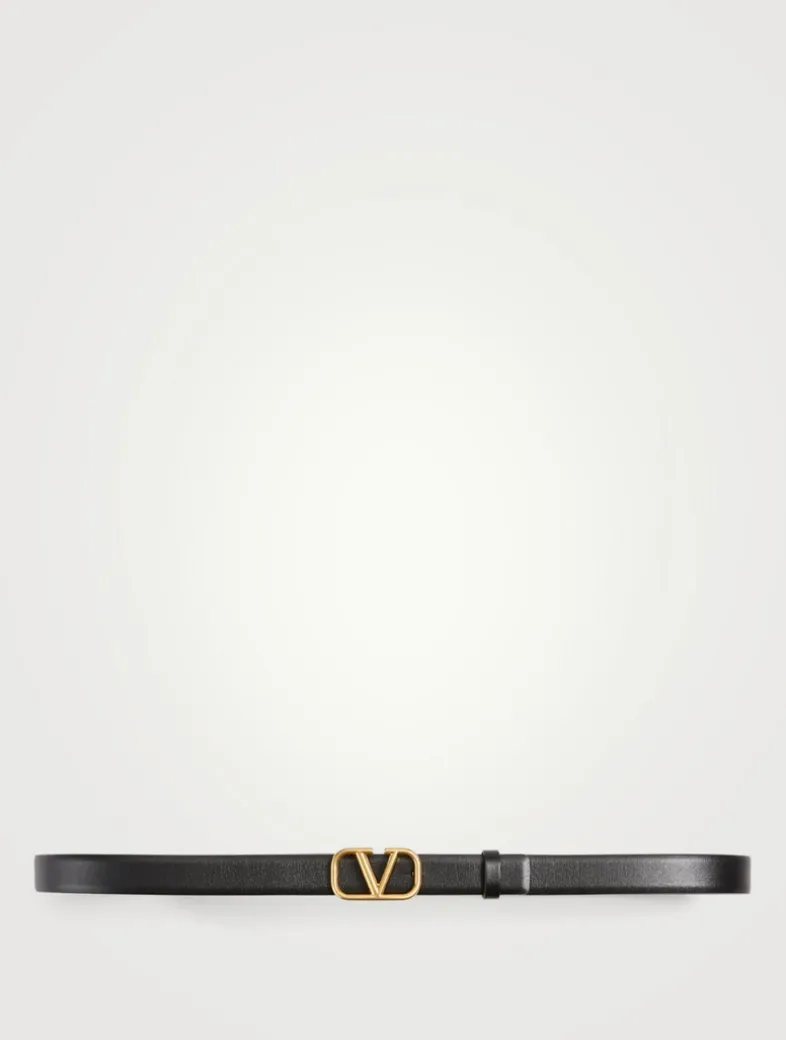 Fully reversible with two glossy leather sides, this Italian-crafted accessory displays a VLOGO signature buckle in an antique brass finish.