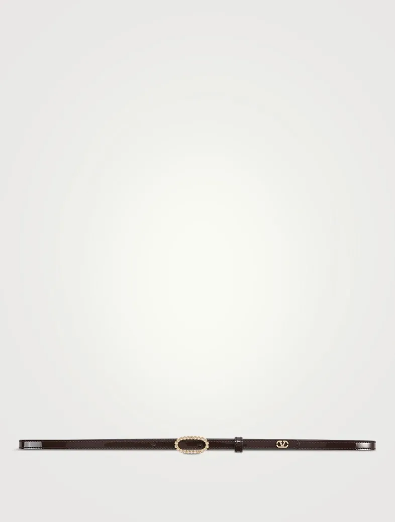 Crafted in Italy from glossy leather, this slender belt features an ornate buckle and VLogo detail.