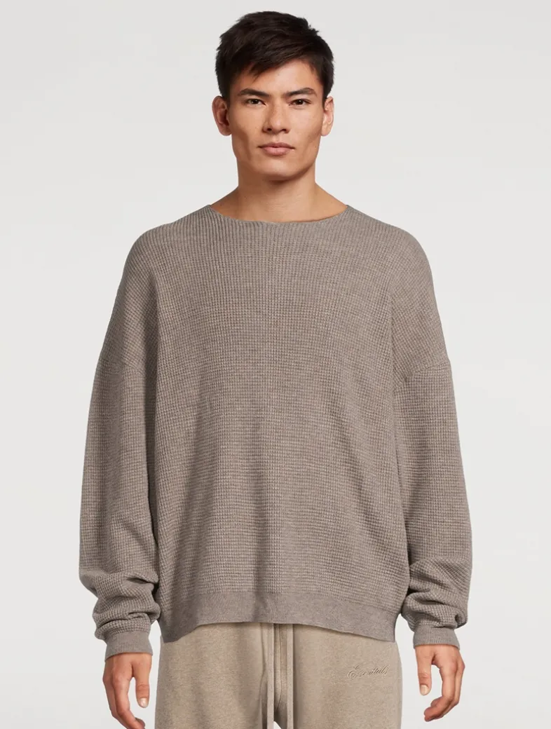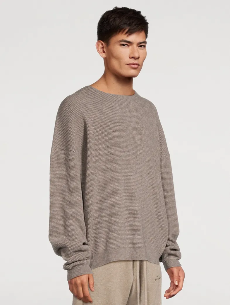 Made from heavyweight poly-nylon knit, this long-sleeve pullover is designed with a fit that is relaxed with drop shoulders, and a