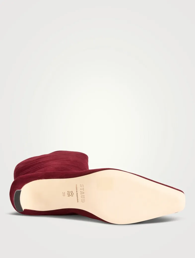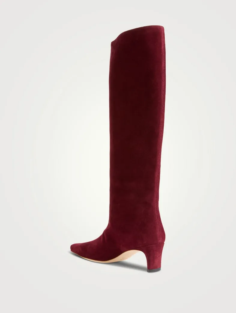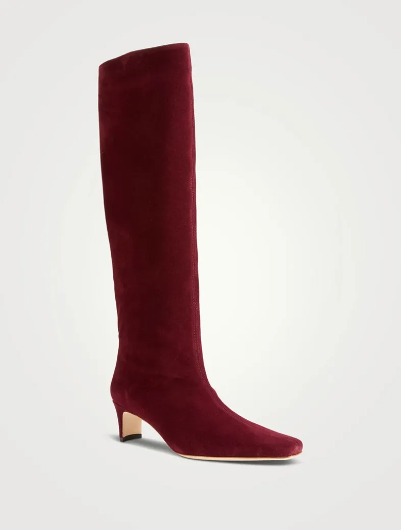 The Wally is a slouchy, knee-high boot featuring an elongated square toe and a slim heel design.