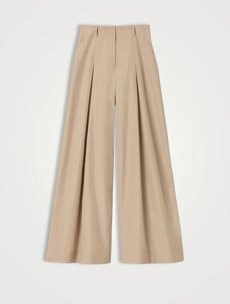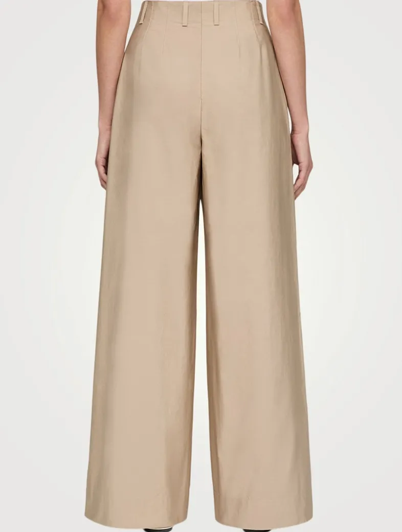 Crafted in crisp organic cotton poplin, the Warren pant is tailored with an exaggerated, wide-leg design and inverted pleats for structured ease. It features a flat front and waist-defining finish.