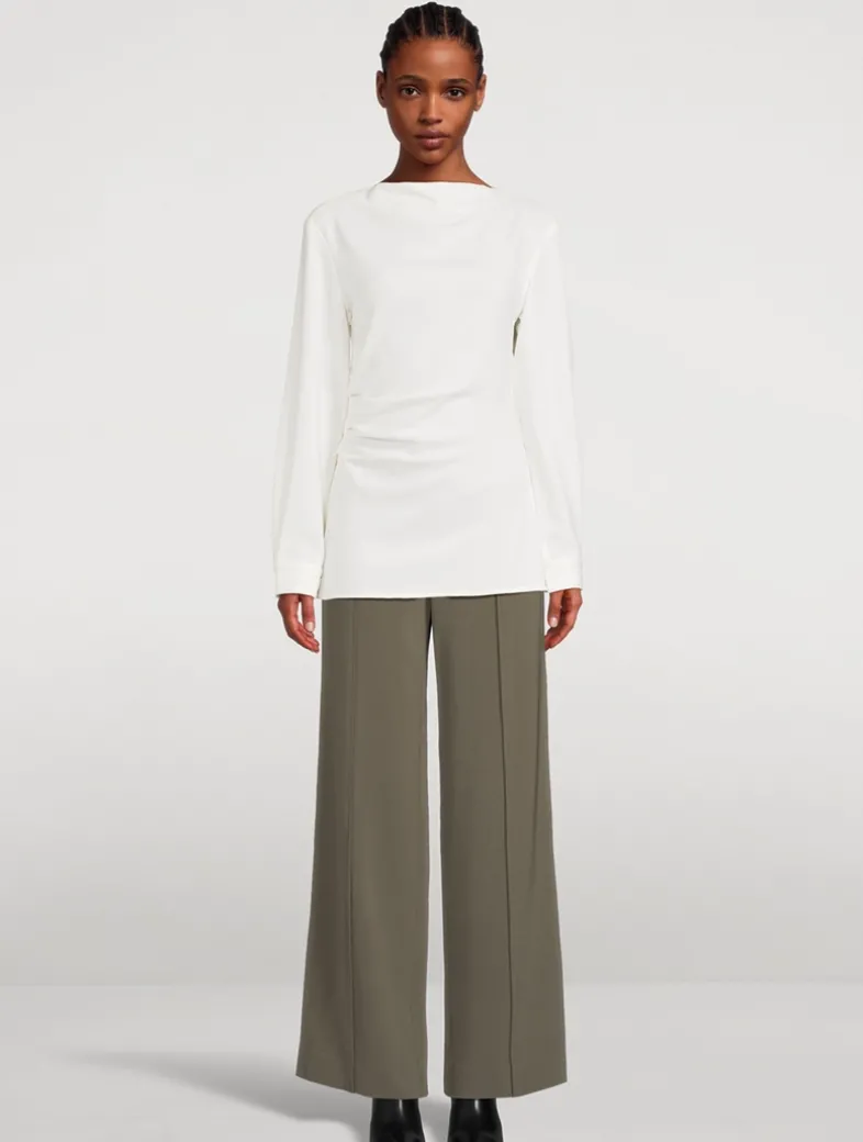 The Weyes Pant in matte double crêpe is tailored to a high-rise silhouette that falls straight through the leg. Finished with side slip pockets and sewn-in creases at the front and back.
