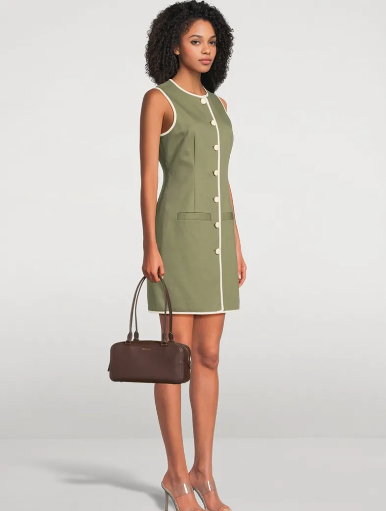 Expertly tailored from premium stretch cotton, the Whistler mini dress is all clean lines and a chic, streamlined silhouette. Contrast piping provides visual intrigue while bezel-set buttons and a pair of welt pockets add a chic finish.