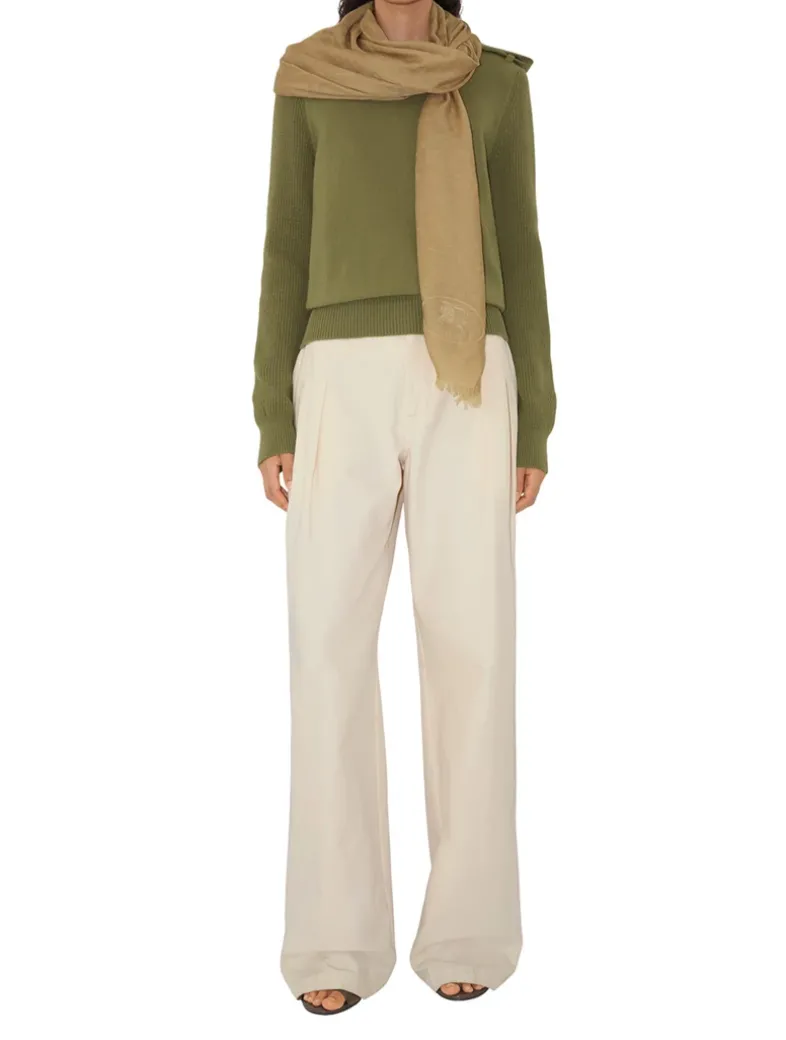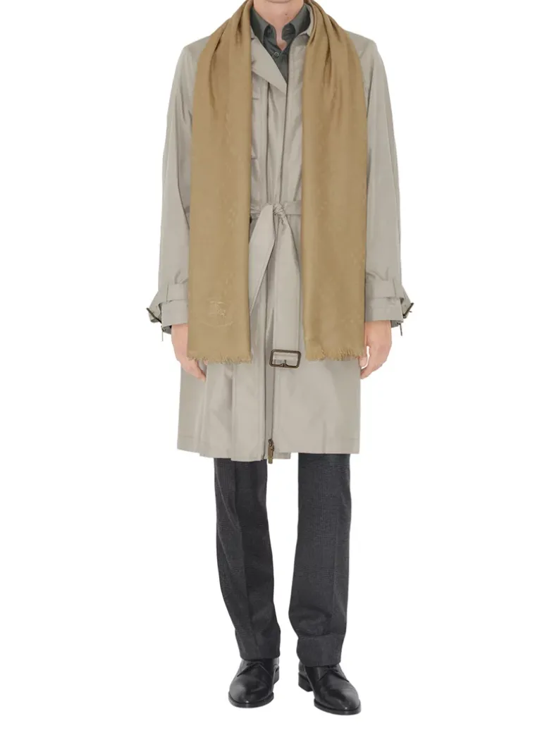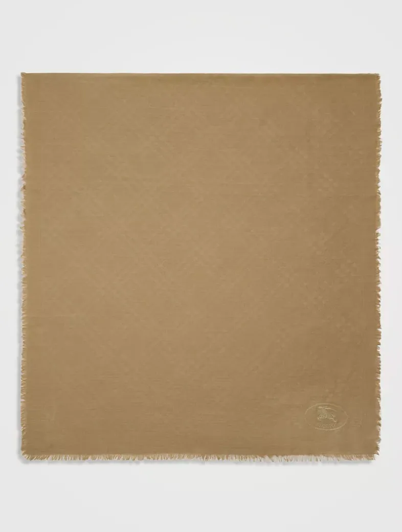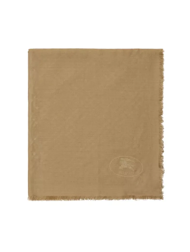 A lightweight scarf made in Italy from soft wool silk, jacquard-woven with a tonal Burberry Check. The style is embroidered with the Knight stamp, an archival motif from the 1980s.