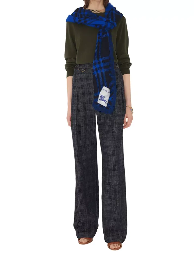 A scarf made in Italy from soft wool silk woven with a check pattern. The lightweight design is finished with an Equestrian Knight Design label.