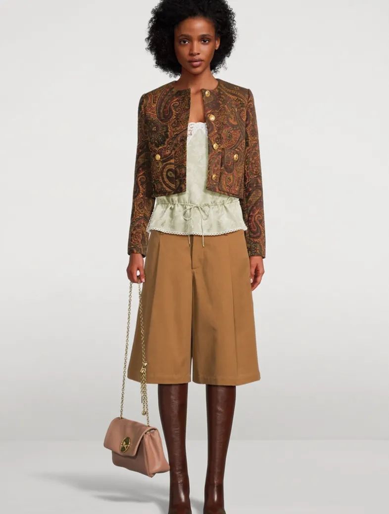 Pleating at the front enhances the voluminous look of these wide-leg shorts. Crafted from crisp cotton, they have a high-rise waist and buttoned welt pockets at the rear.