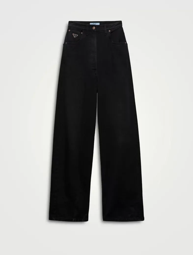 Washed treatment Garment dyed Loose fit High waist Hem width: 26 cm, Size: 25 Button fly Matching stitching Rounded front pockets with coin pocket Patch pockets on the back Total length 126 cm, size: 25 Triangle logo Prada Milano logo label on the back