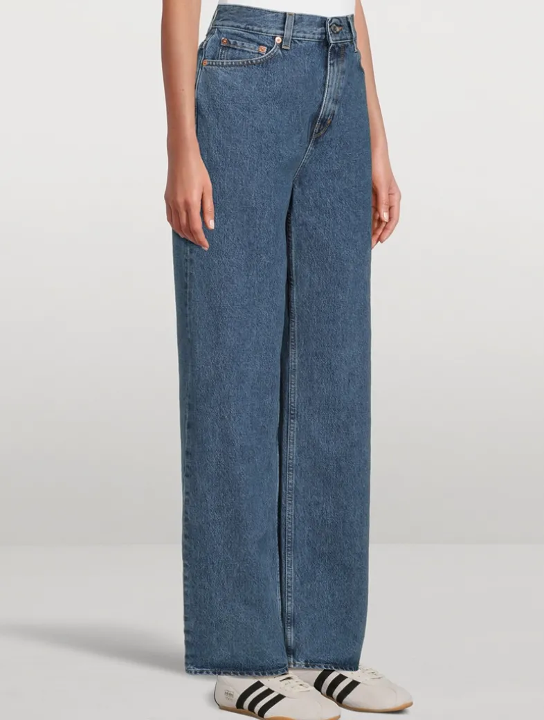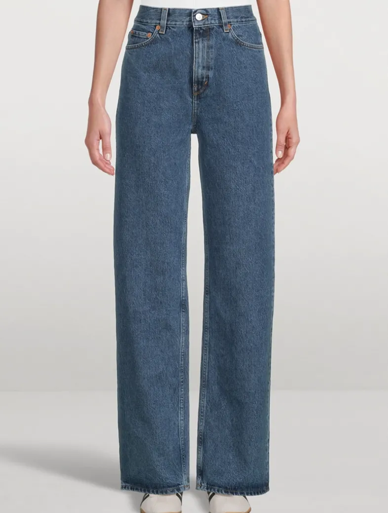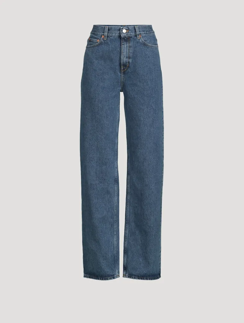 Cut to sit high on the waist, these jeans have a relaxed, straight-leg silhouette for a classic take on denim. They are crafted from 100% cotton denim with a uniform wash and five-pocket styling.