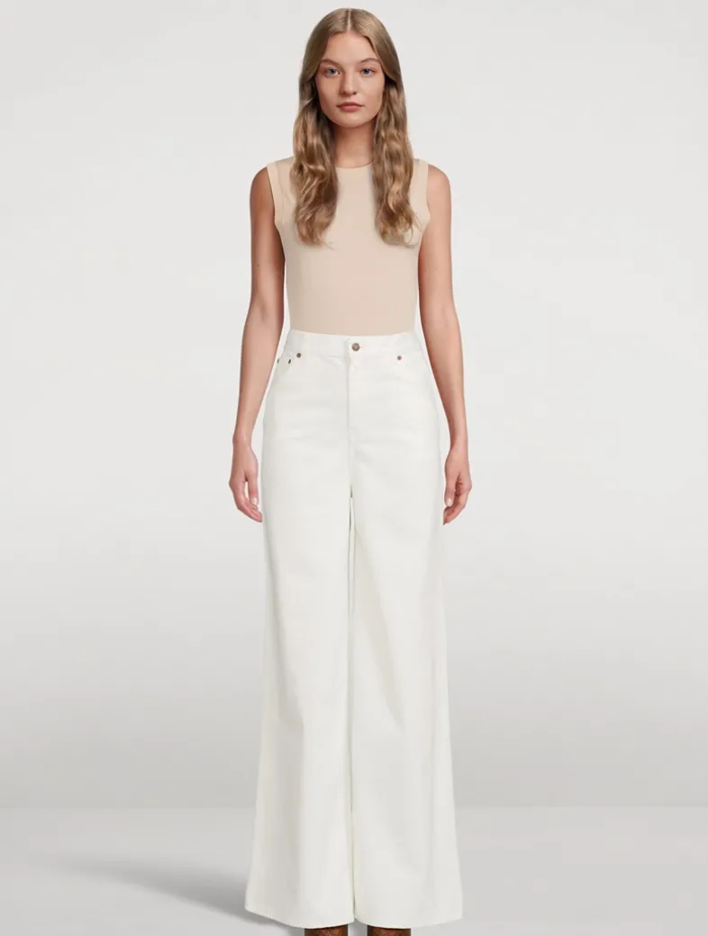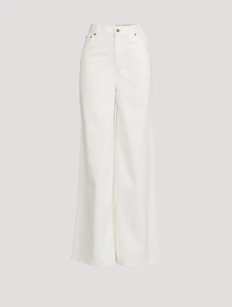 Cut to sit high on the waist, these five-pocket jeans have a dramatic wide-leg silhouette. They are crafted in Italy from 100% cotton denim.