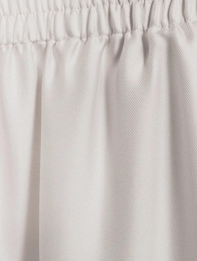 In woven twill silk, the wide-leg trouser has a relaxed, full-length fit through the leg, with a mid-rise, elasticated pull-on waistband.