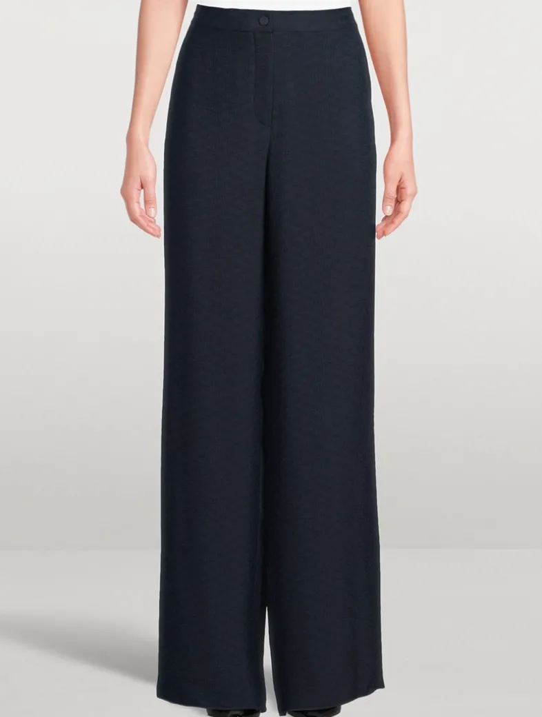 Cut to a high rise, these wide-leg trousers are made from a fluid armure fabric. The garment is part of the Icon capsule collection.