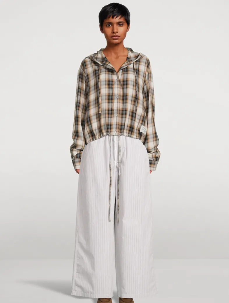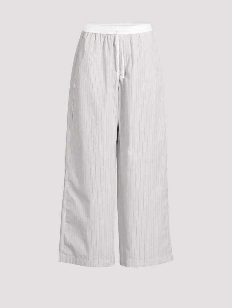 Made in Portugal, these trousers are crafted from heavy poplin shirting fabric with a seasonal striped pattern. Designed with an elasticated waistband with drawstring closure and complete with side pockets and an embroidered Face logo.