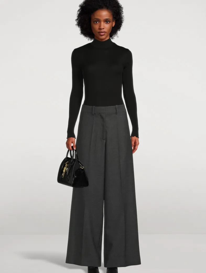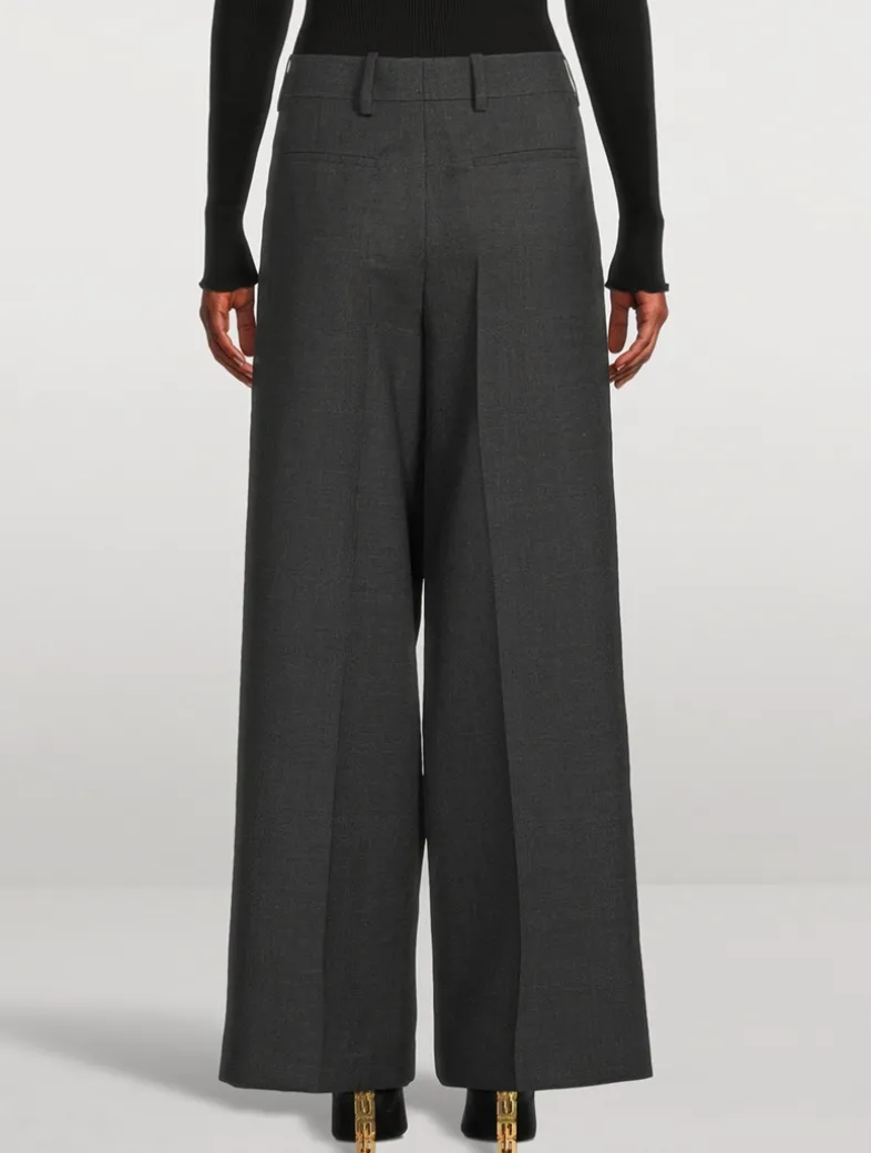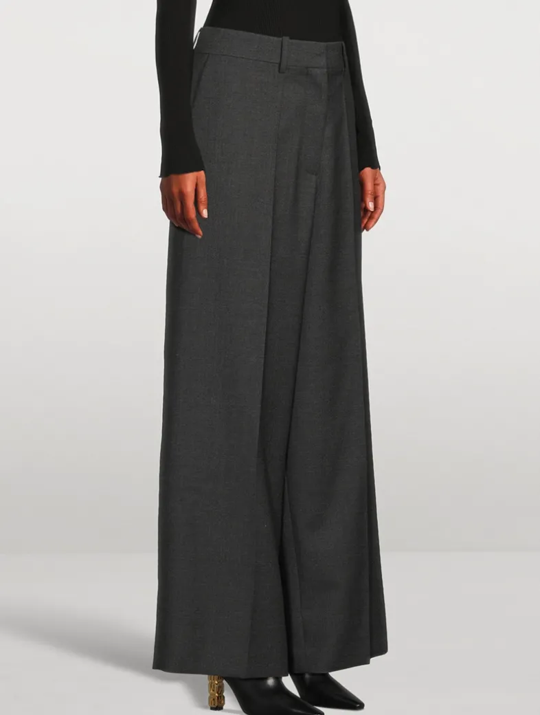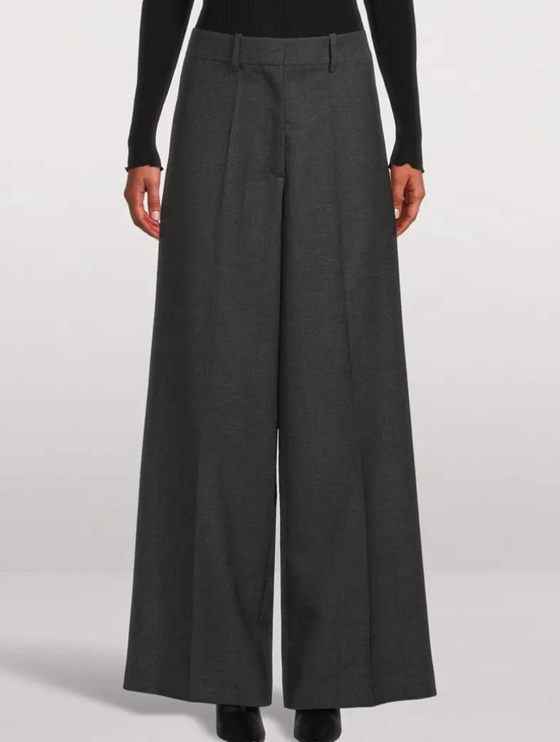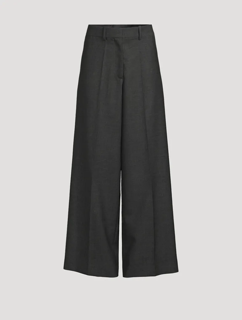 Exquisitely tailored from a luxe virgin wool, these trousers exude a minimalist elegance. They have a voluminous wide-leg silhouette finished with pockets at the sides and rear.