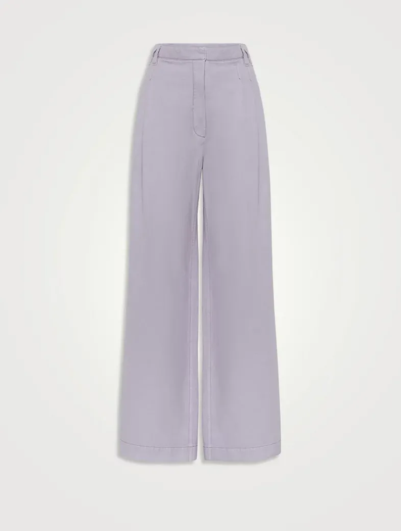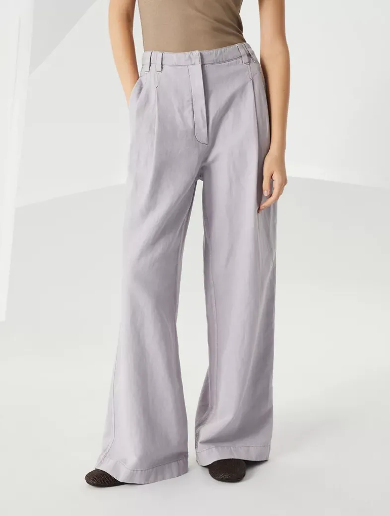 Garment-dyed cotton and linen cover smart wide trousers with monili