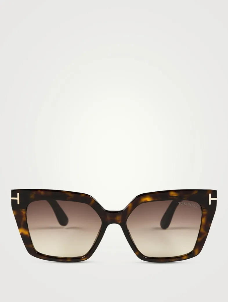 A contemporary minimalist design in glossy acetate, these sharp cat-eye sunglasses are accented with by metal T logos at the temples.