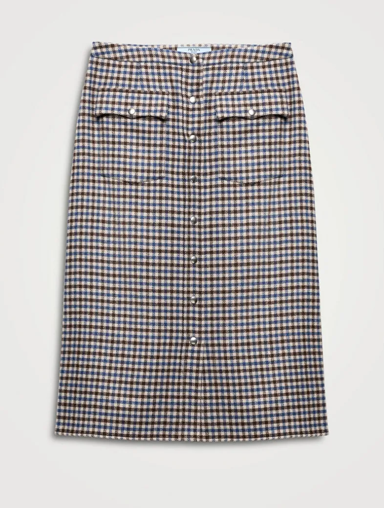 Pencil silhouette Front snap closure Patch pockets with snaps