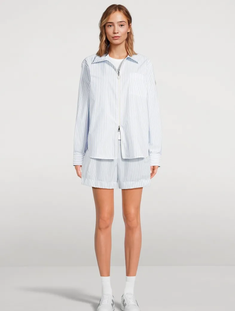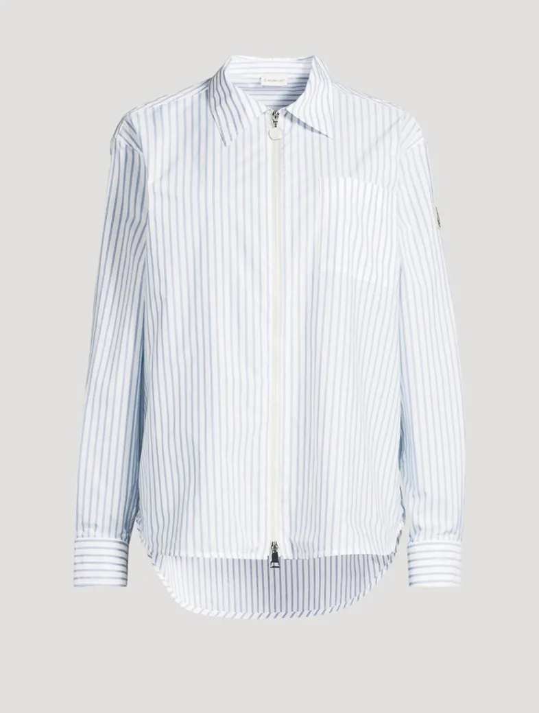 A contemporary take on the classic button down, this striped shirt features in a zip-up design.