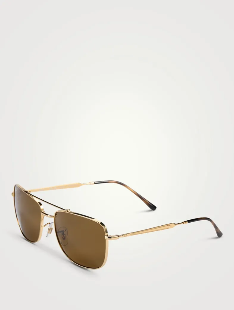 These sunglasses from Ray-Ban are a versatile choice. The rectangle shape and standard temples offer a sleek and modern look. Style is not RX-able.