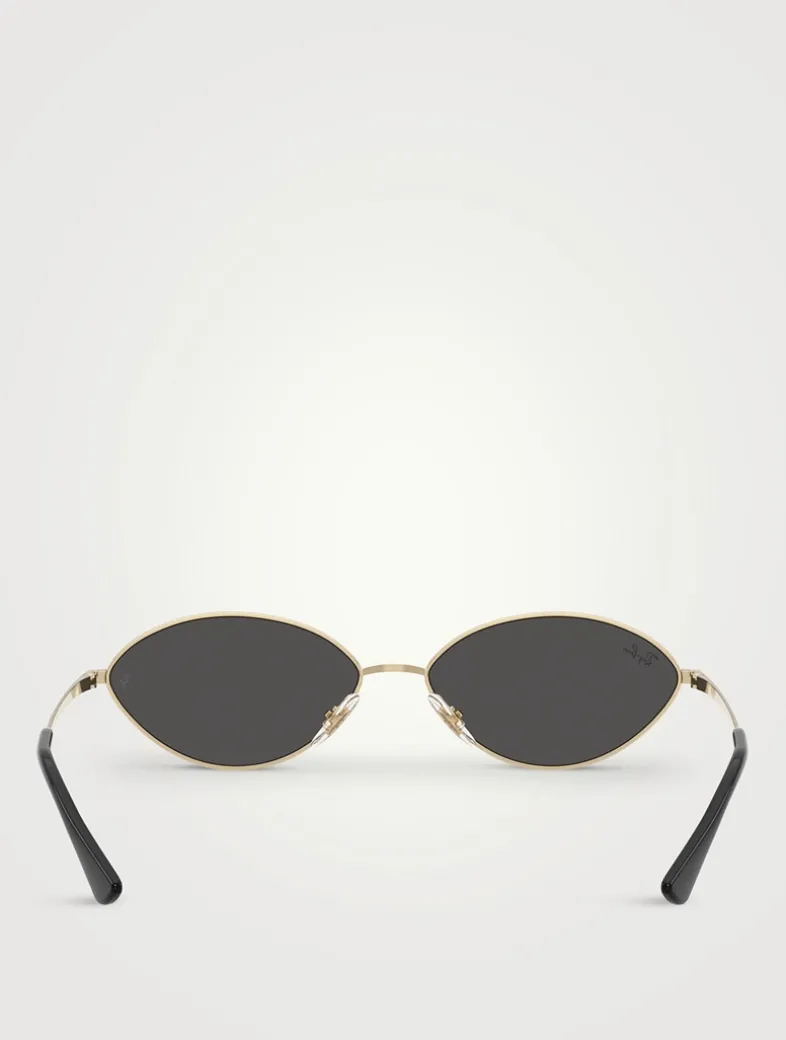 These oval sunglasses are constructed with a sleek metal frame. The standard size fits comfortably on most wearers, making them suitable for everyday use. Style is Rx-able.