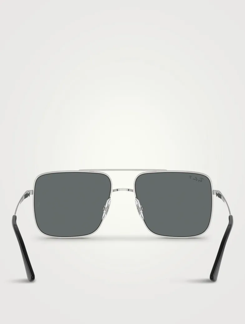 These square sunglasses combine a bold oversized shape with iconic aviator construction. This style is Rx-able.