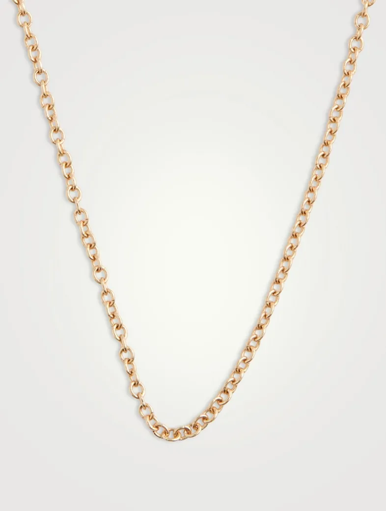 Made from solid gold, this dainty cable chain fastens with a lobster clasp.
