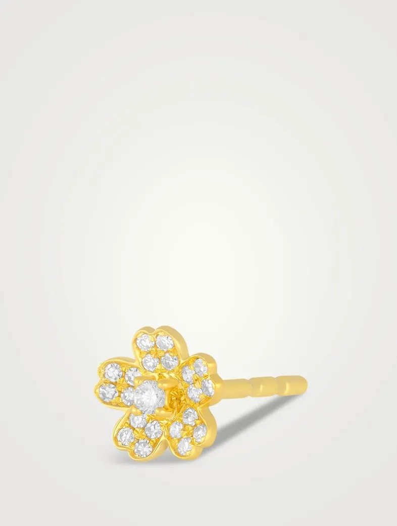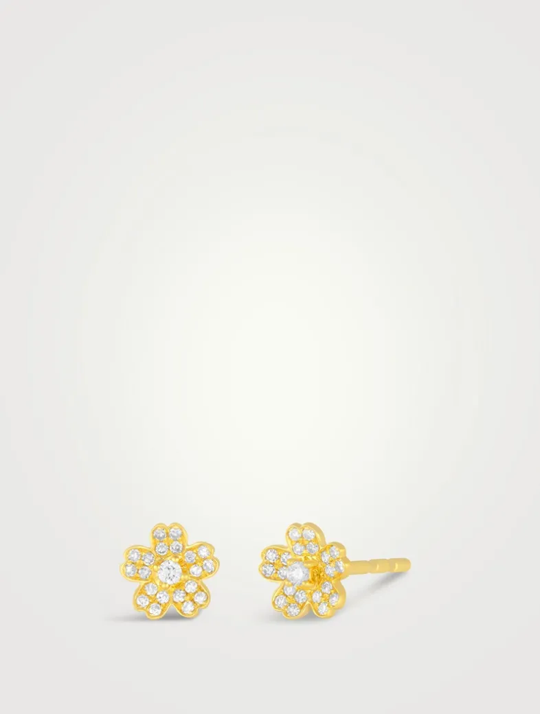 Made from 14k gold, these cherry blossom studs are encrusted with sparkling diamonds.