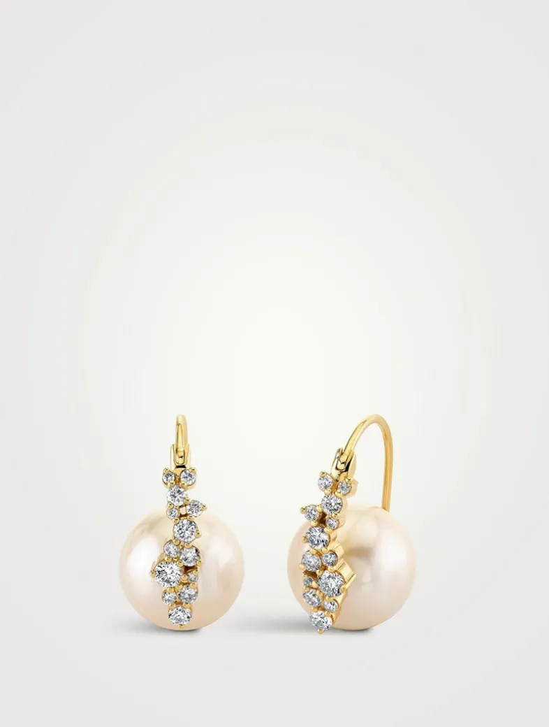 14K Gold Cocktail Bead Pearl Earrings With Diamonds