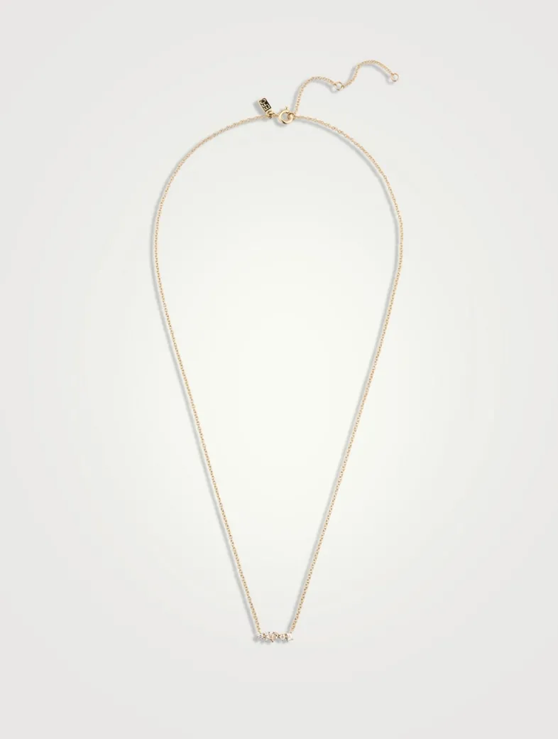 The Diamond Multifaceted Mini Bar Necklace makes a statement with 0.05 carats of diamonds varying from round to baguette to pear.