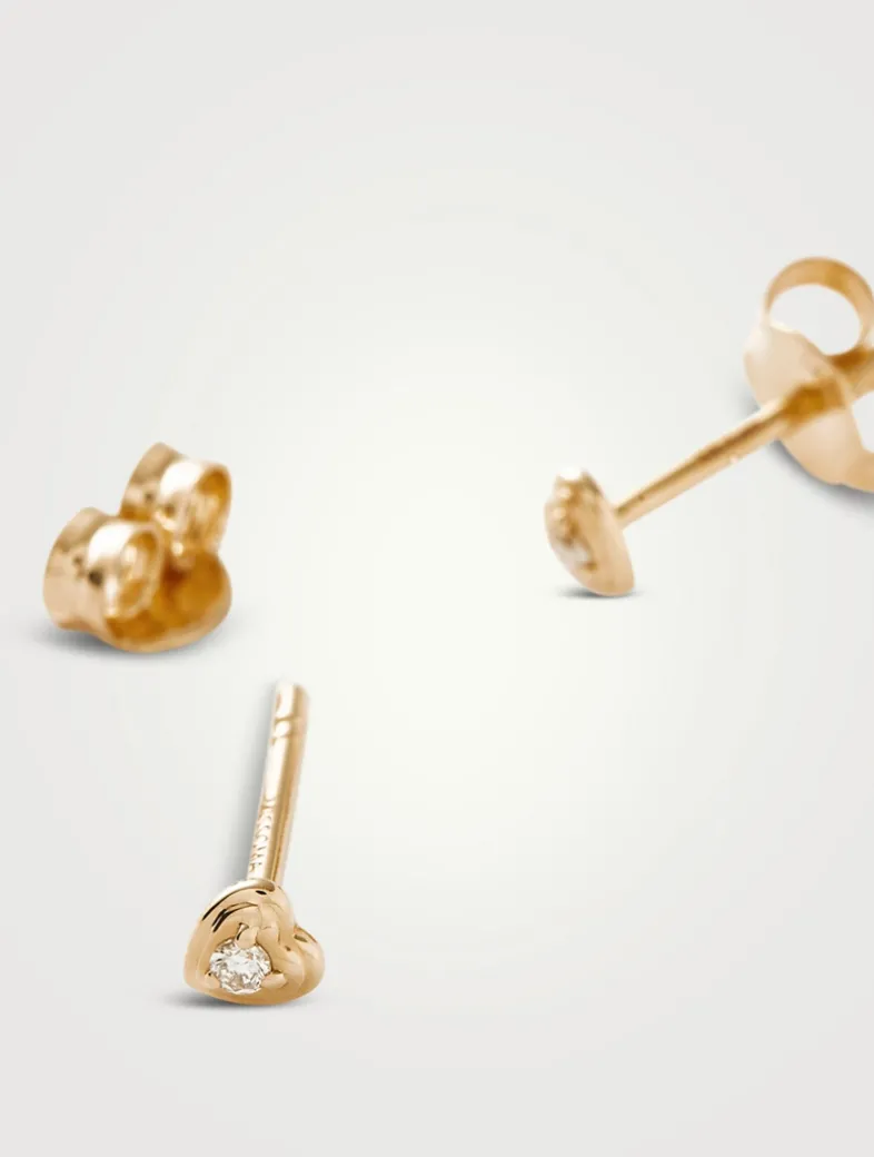 These heart-shaped earrings are an elevated take on the brand’s signature studs, featuring central round diamonds and signature ridge detailing.