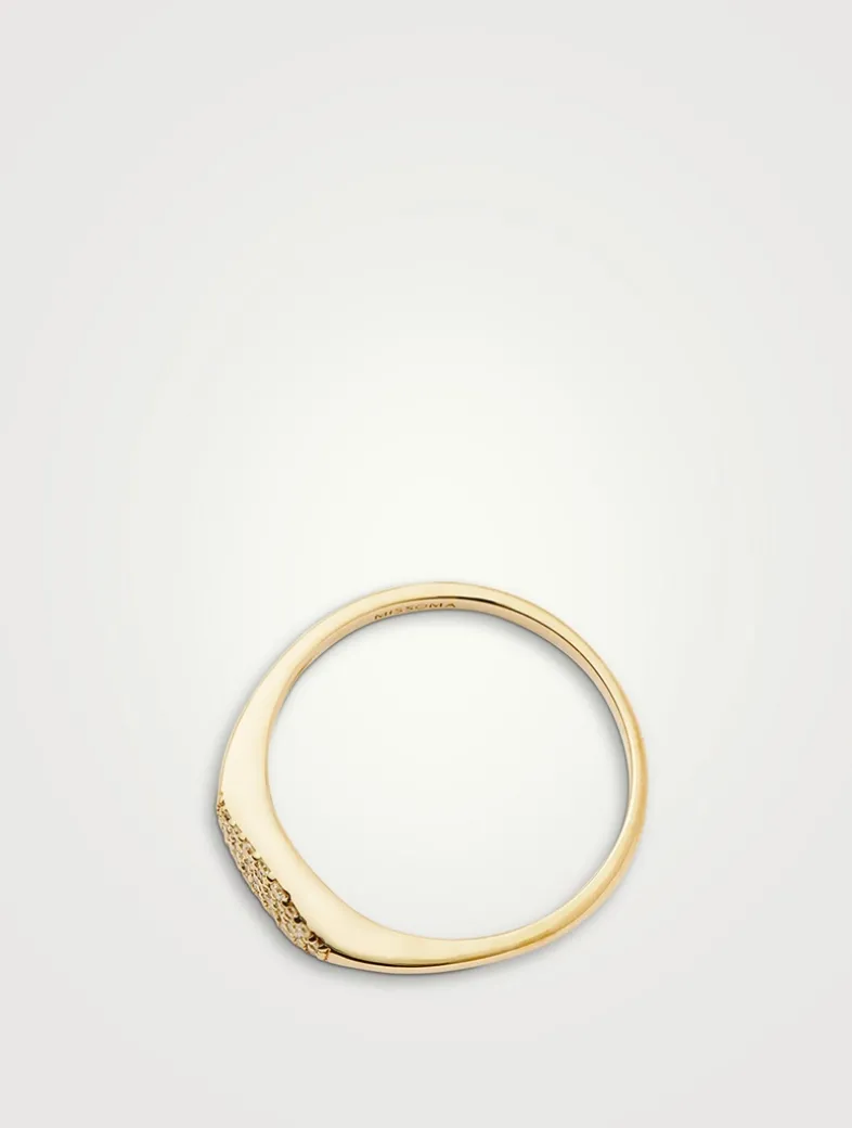 A forever piece, this delicate solid 14k gold signet ring features a thin band with a pavé set diamond design. Wear solo or pair with more solid gold bands for a refined ring stack.