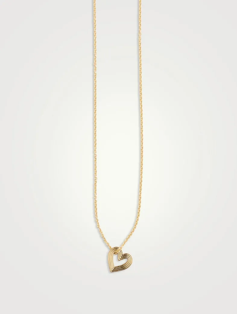 Crafted from 14k gold, this heart charm necklace features a fluted design that adds texture and subtle shimmer to its delicate shape. Paired with an adjustable fine 14k gold cable chain.
