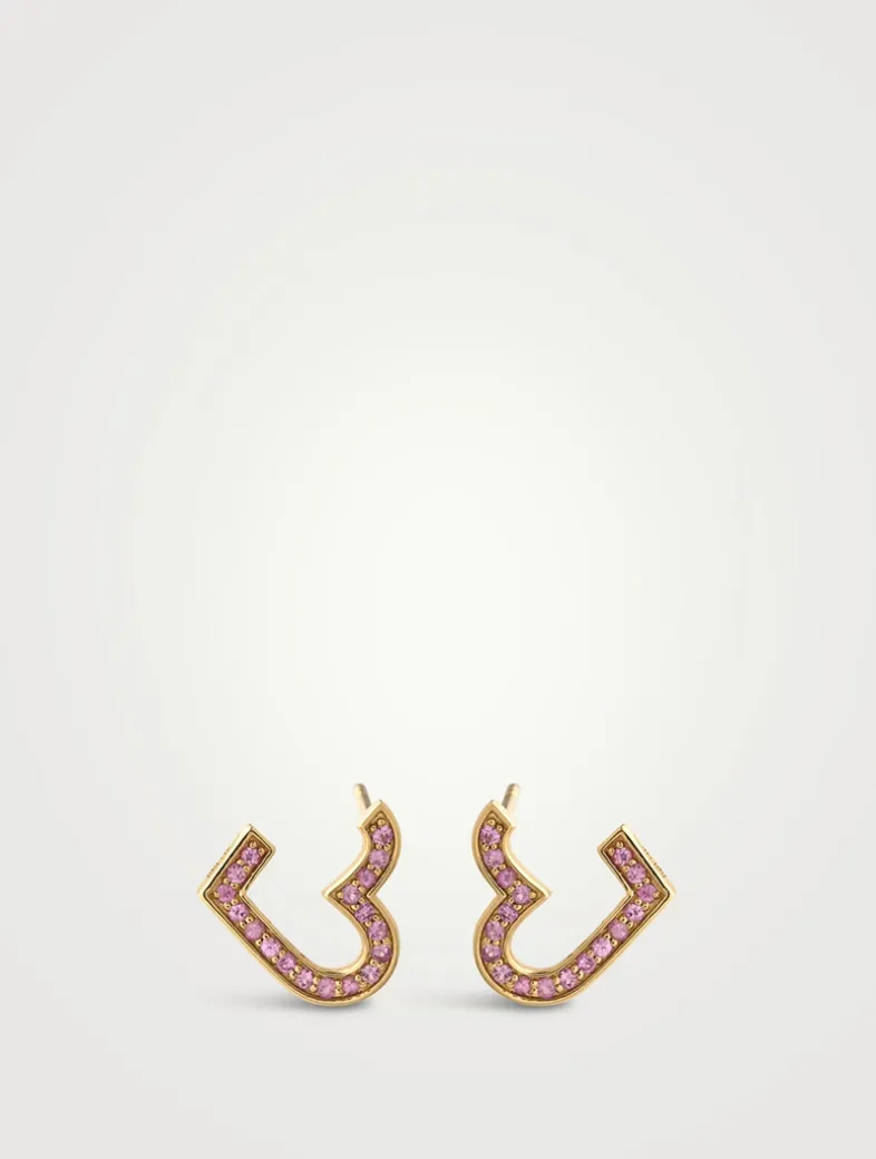 14K Gold Heart Wrap Hoop Earrings With Pavé Pink Sapphire