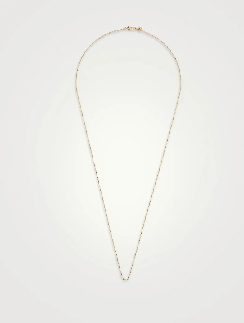 Perfect for layering or as the foundation for your most cherished pendants, this long 14k gold chain features intricately crafted 1.4mm diamond-cut beads that catch and reflect light beautifully.