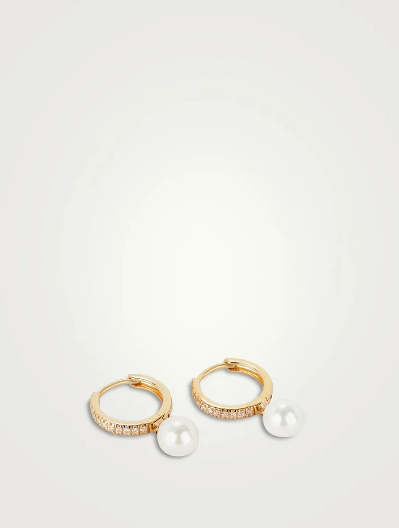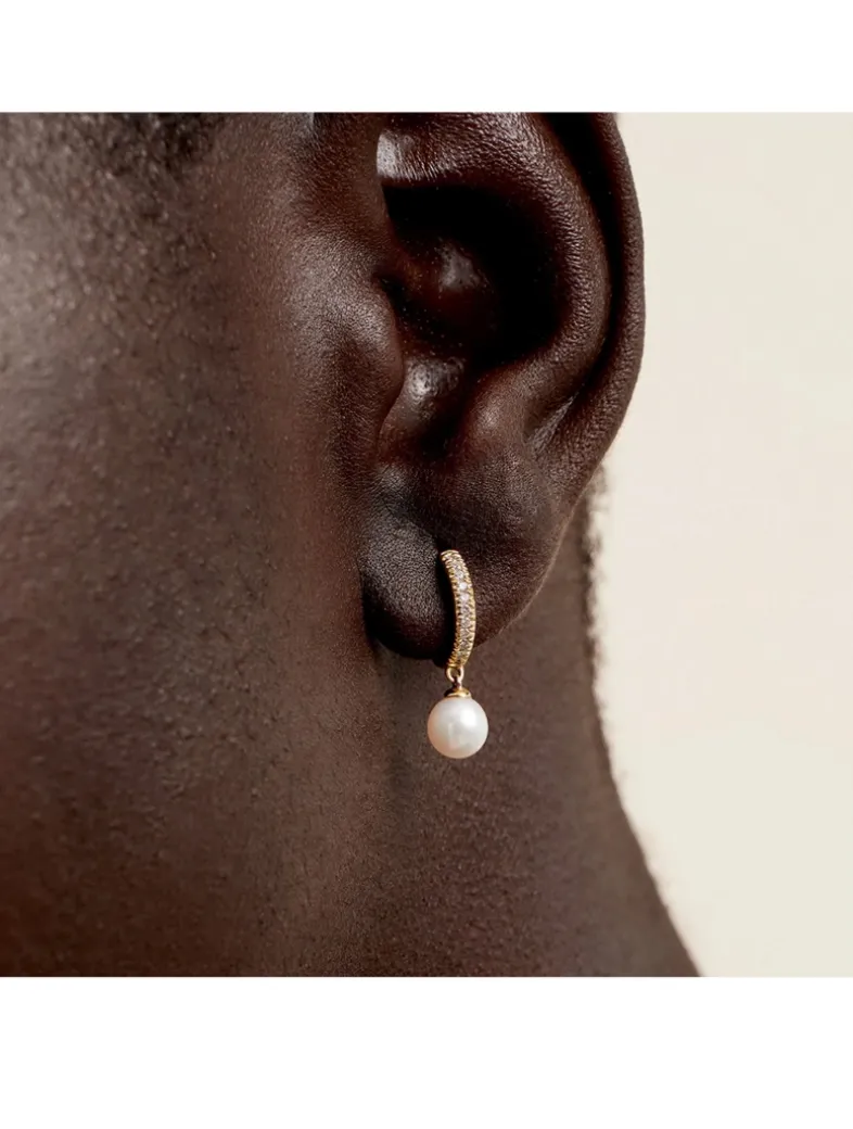Any time, any place these huggies fit the bill. Handcrafted in 14k solid gold featuring 22 diamonds in a pavé setting and a round freshwater pearl—it’s your essential diamond earring with a fresh twist.
