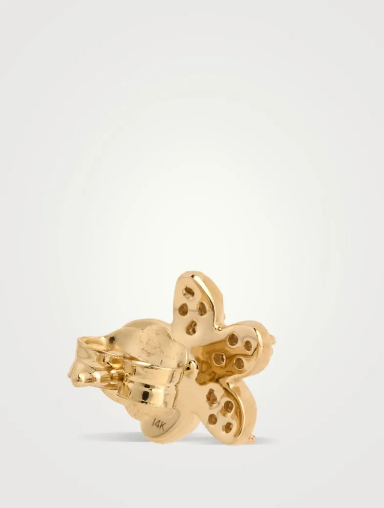These 14k gold flower stud earrings are pavé-set with 42 brilliant round diamonds and feature matching 14k gold posts and backings for secure, elegant wear.