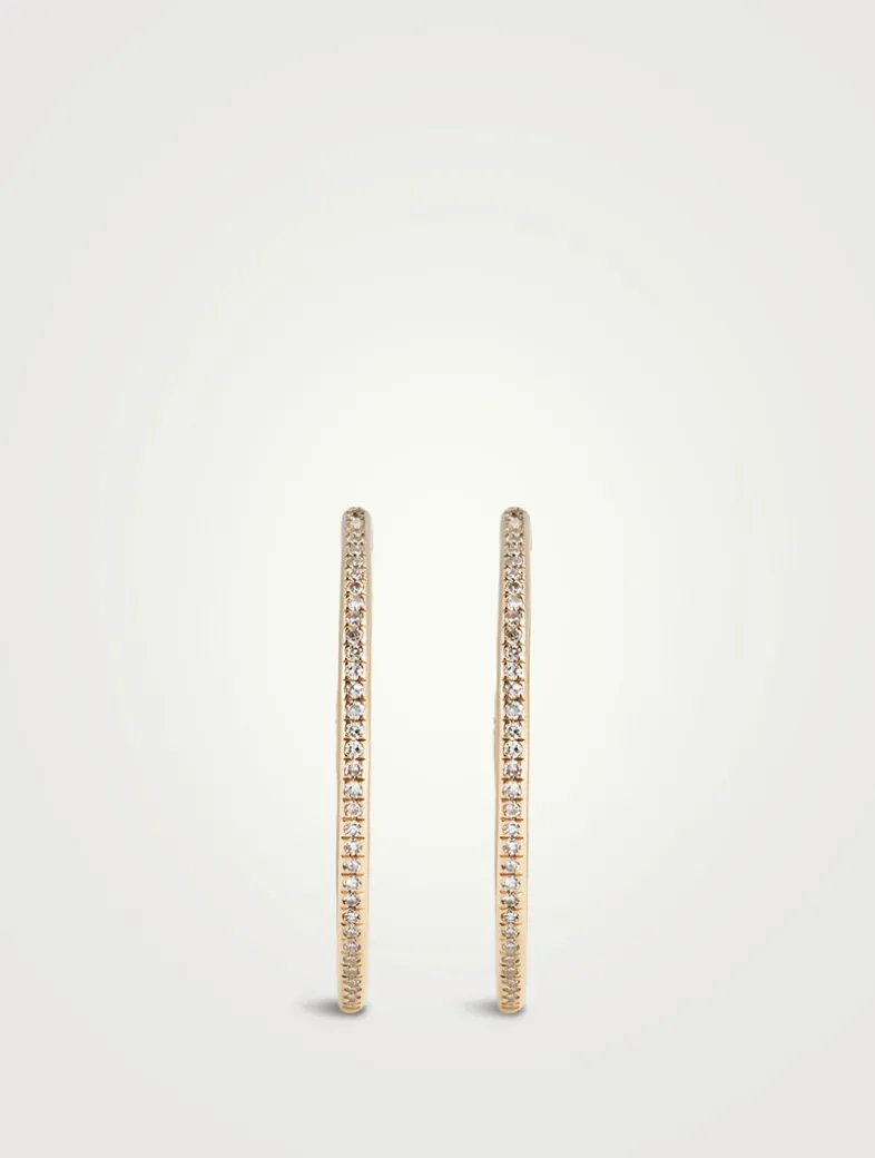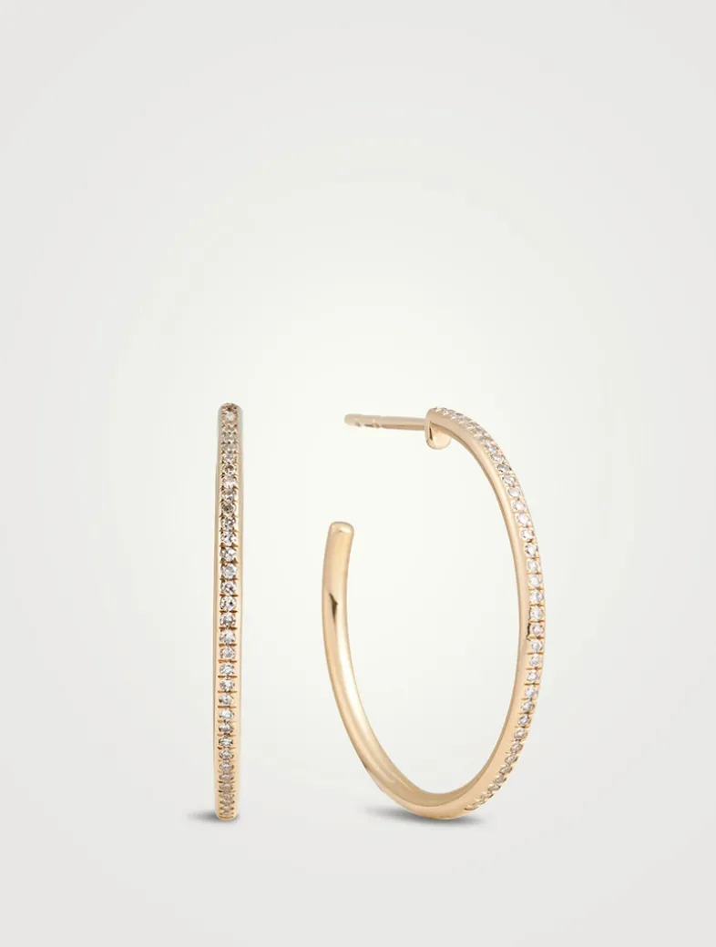 14K Rose Gold Half Diamond Essential Hoop Earrings