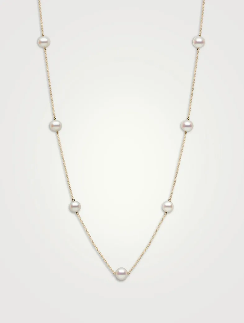 Comprised of timeless, jewellery box staples, Yoko London’s Classic collection is designed to last through the generations. Featuring lustrous pearls set on a delicate 18k gold chain, this necklace is finished with a logo plaque on the adjustable closure.