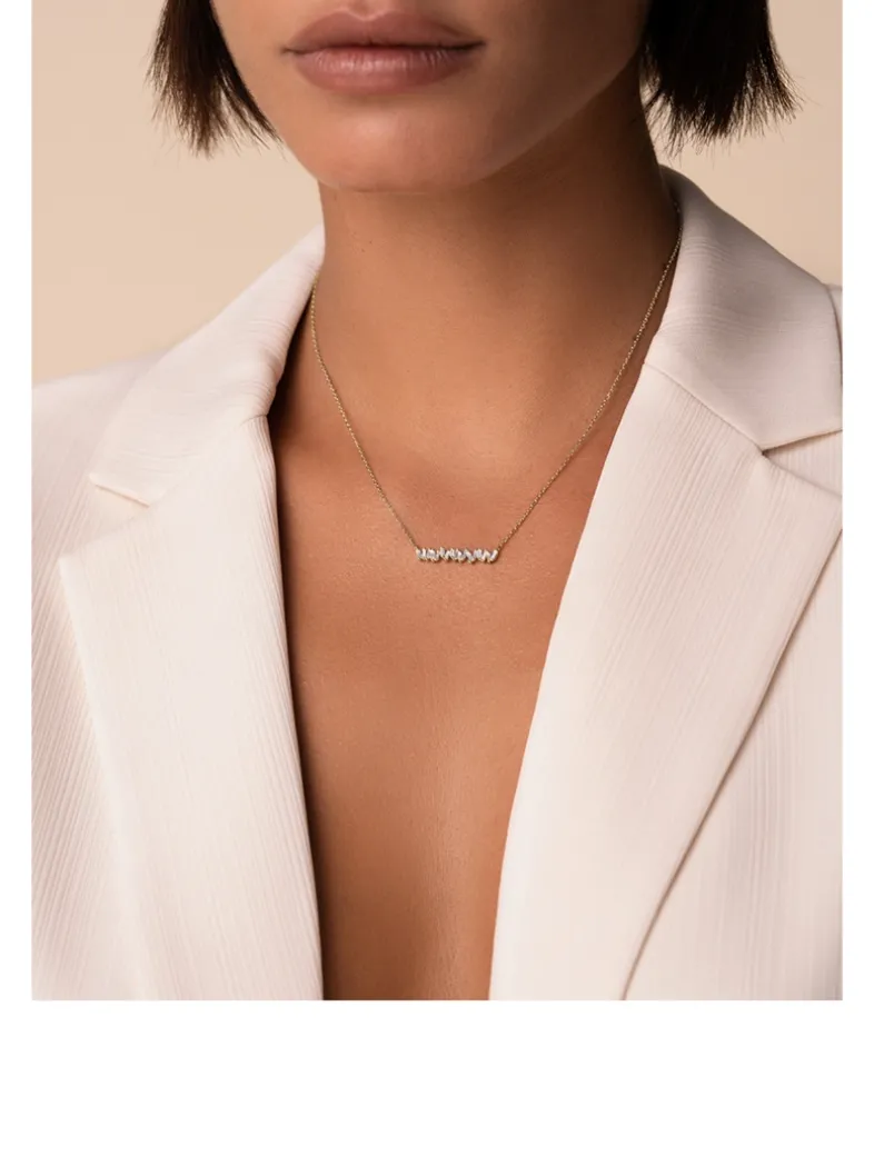 A favourite among the brand’s fans, this pendant necklace is crafted in 18k gold. Set with white diamond baguettes, this pendant seamlessly blends enduring style and modern aesthetics.