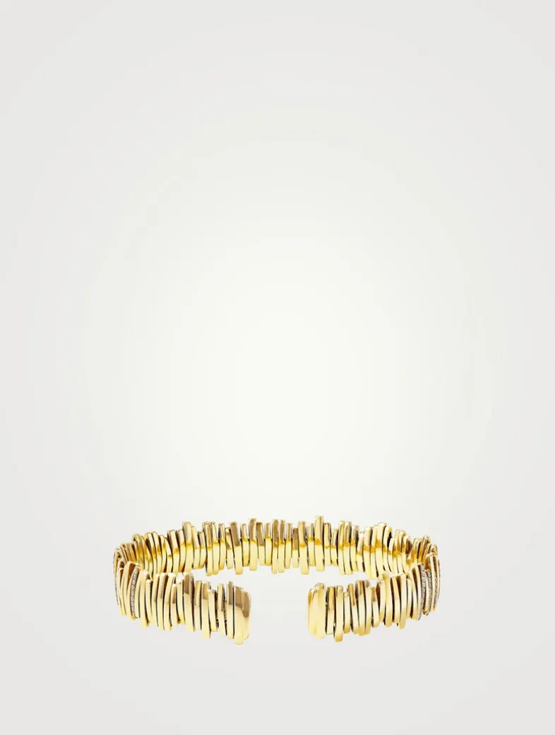 Expertly handcrafted from 18k gold, 402 perfectly-set pavé diamonds make this bangle a true showstopper. Set in the brand’s signature design, this bracelet is crafted on an 18k spring gold wire to provide a flexible yet sturdy base, allowing the bangle to move with you throughout the evening.