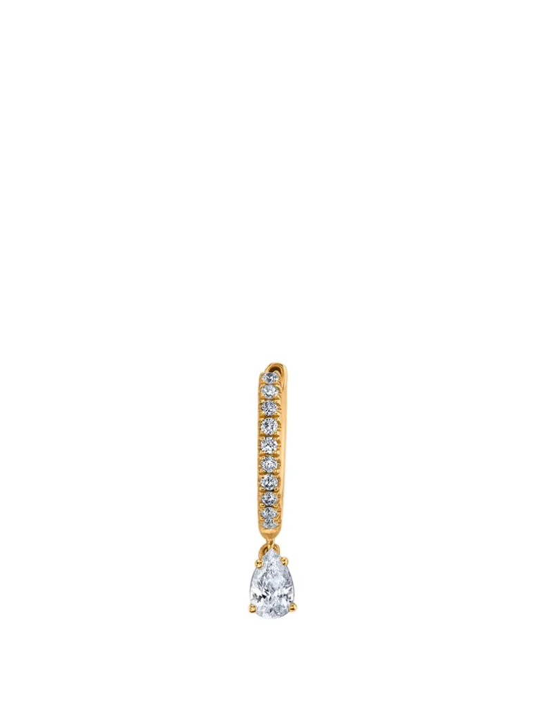 A single earring, this slim hoop is traced with pavé diamonds and accented with a dangling pear diamond.