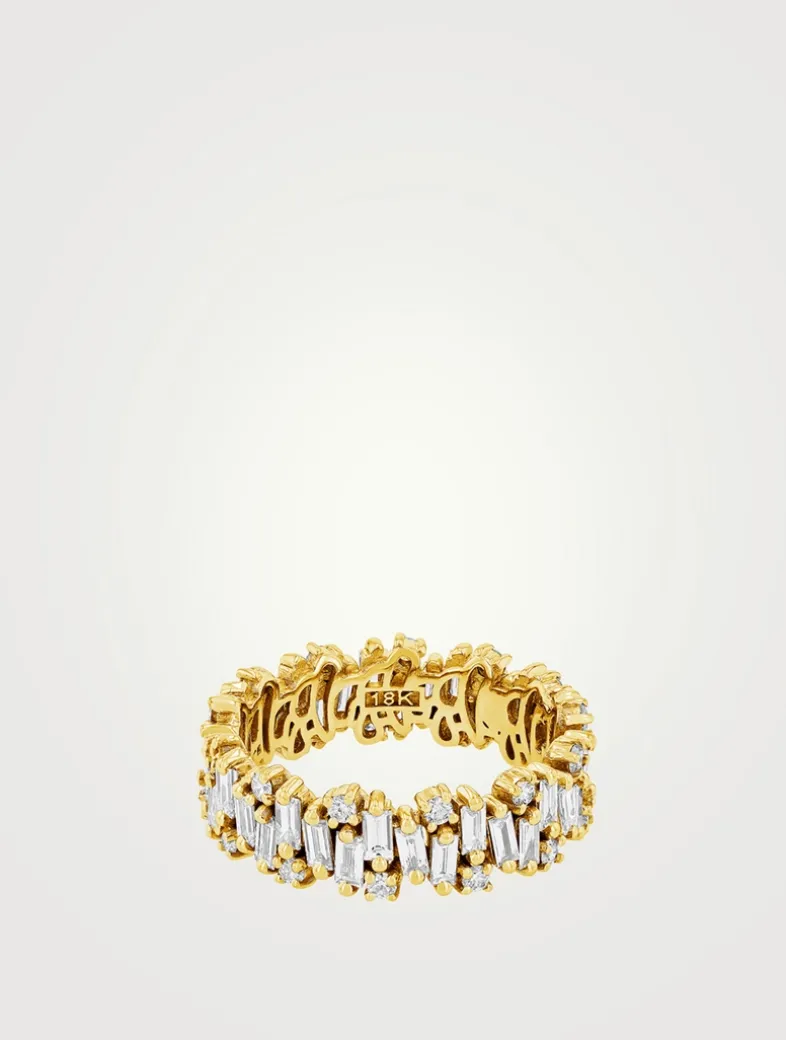 This exquisite ring beautifully blends baguette and round white diamonds. Crafted in 18k gold, the ring offers a contemporary twist on the timeless diamond eternity band.