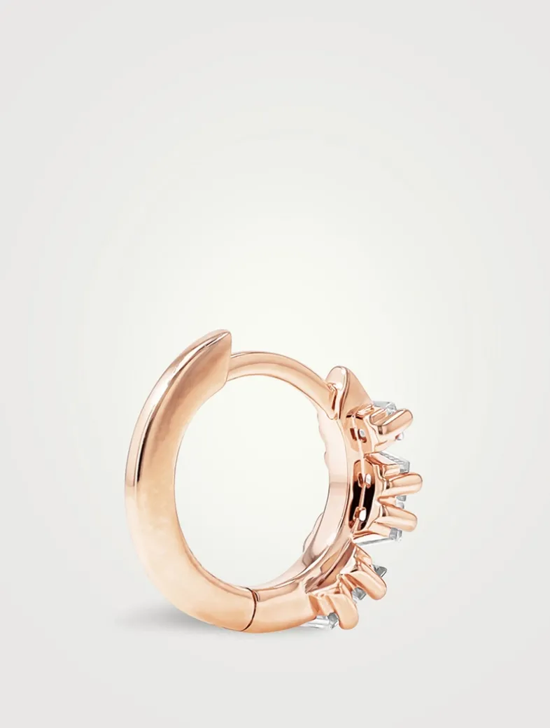 Crafted in 18k rose gold, these huggies feature elegant baguette diamonds designed in Suzanne Kalan’s iconic style.