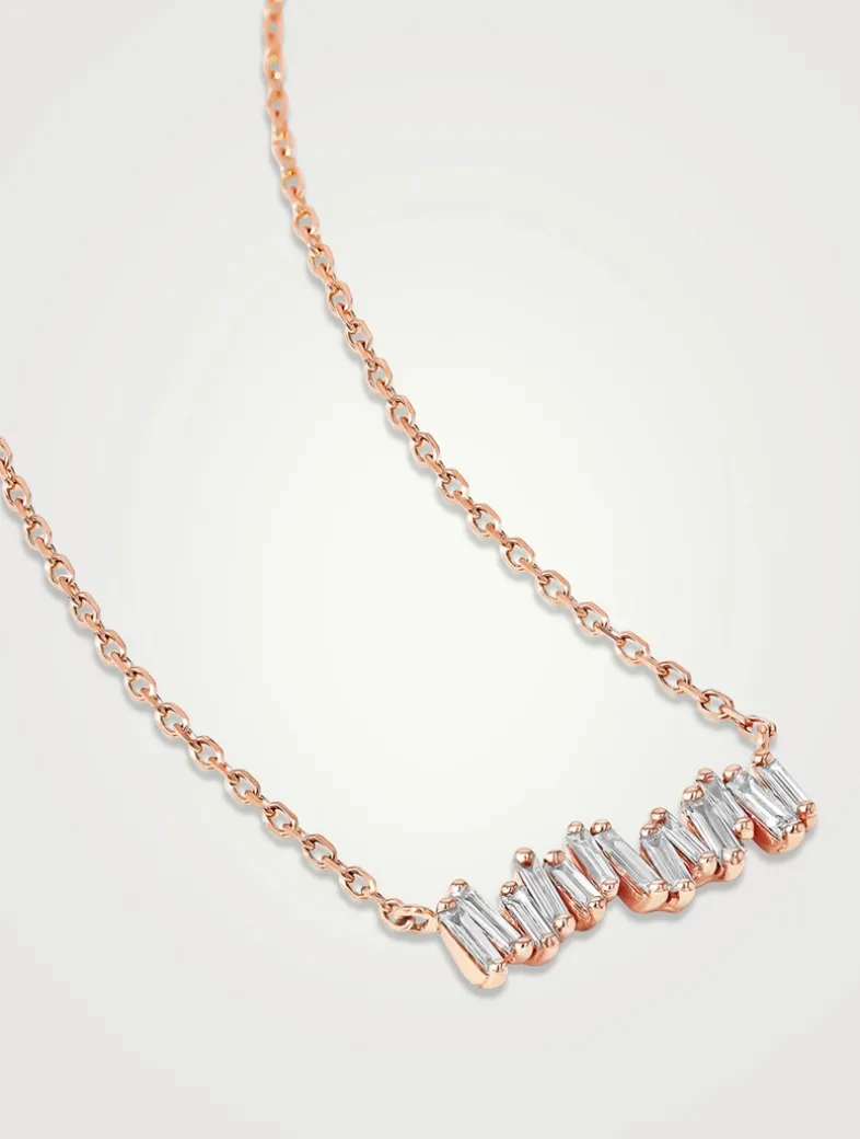 The exquisite mini bar pendant is one of Suzanne Kalan’s bestsellers. This pendant exudes timeless elegance with a modern twist, making it a standout addition to any wardrobe.