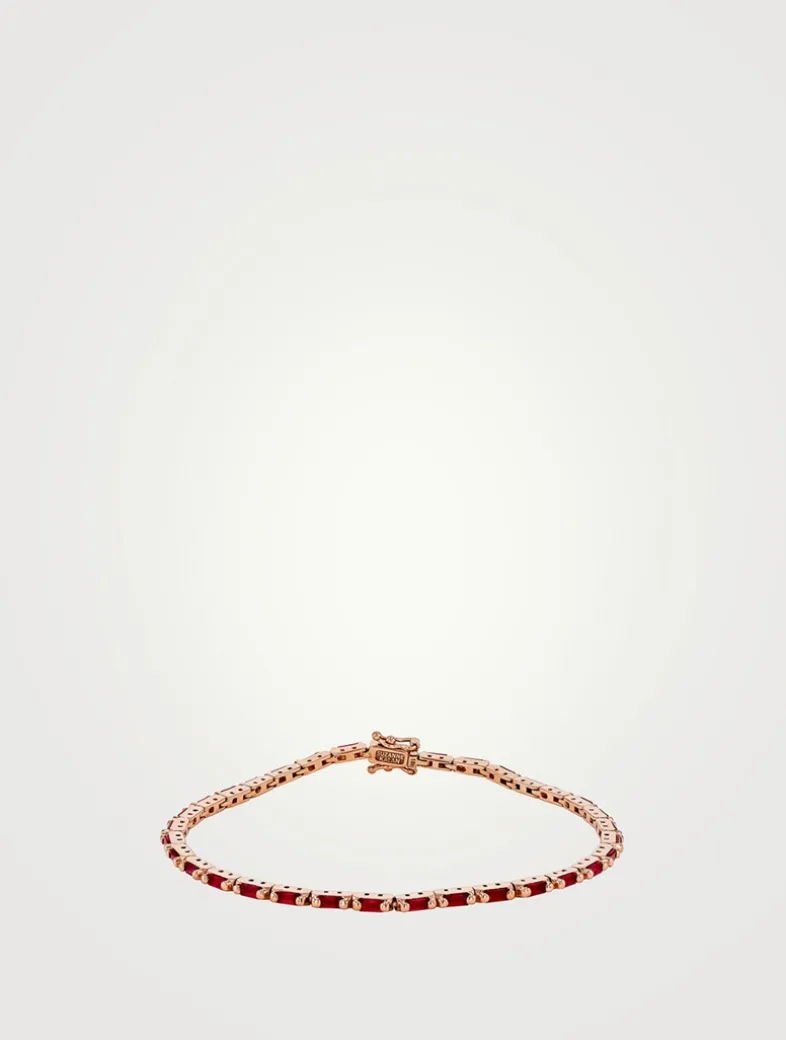 Elegant and slender, this versatile piece is crafted in rose gold. Baguette rubies are set in a horizontal design to maximize their brilliance with every movement.