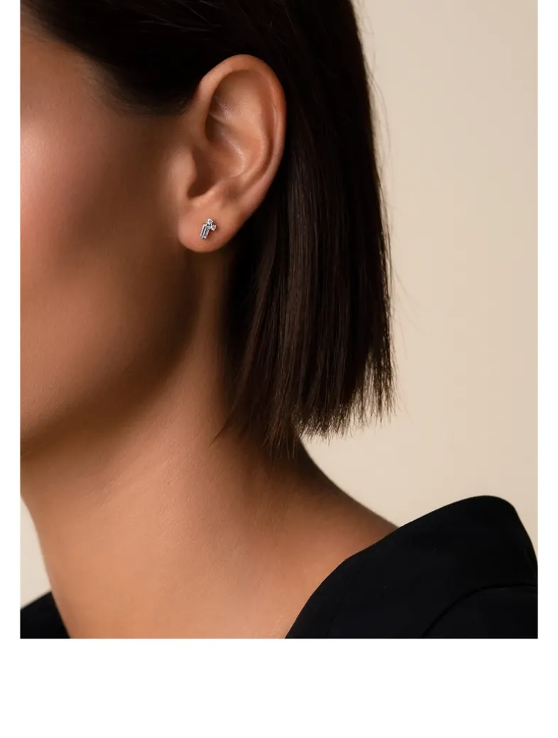 These sparkling studs feature diamond rounds and baguettes that exude sophistication. Designed for both elegance and durability, they promise to be a timeless addition to your jewellery collection.