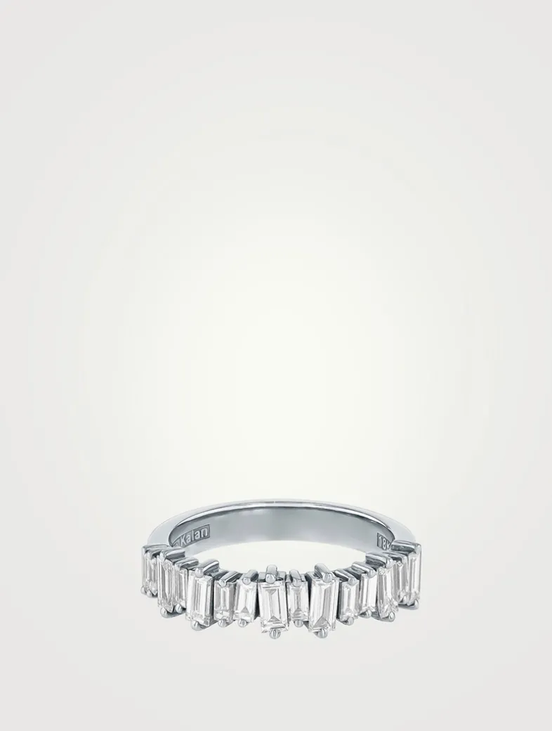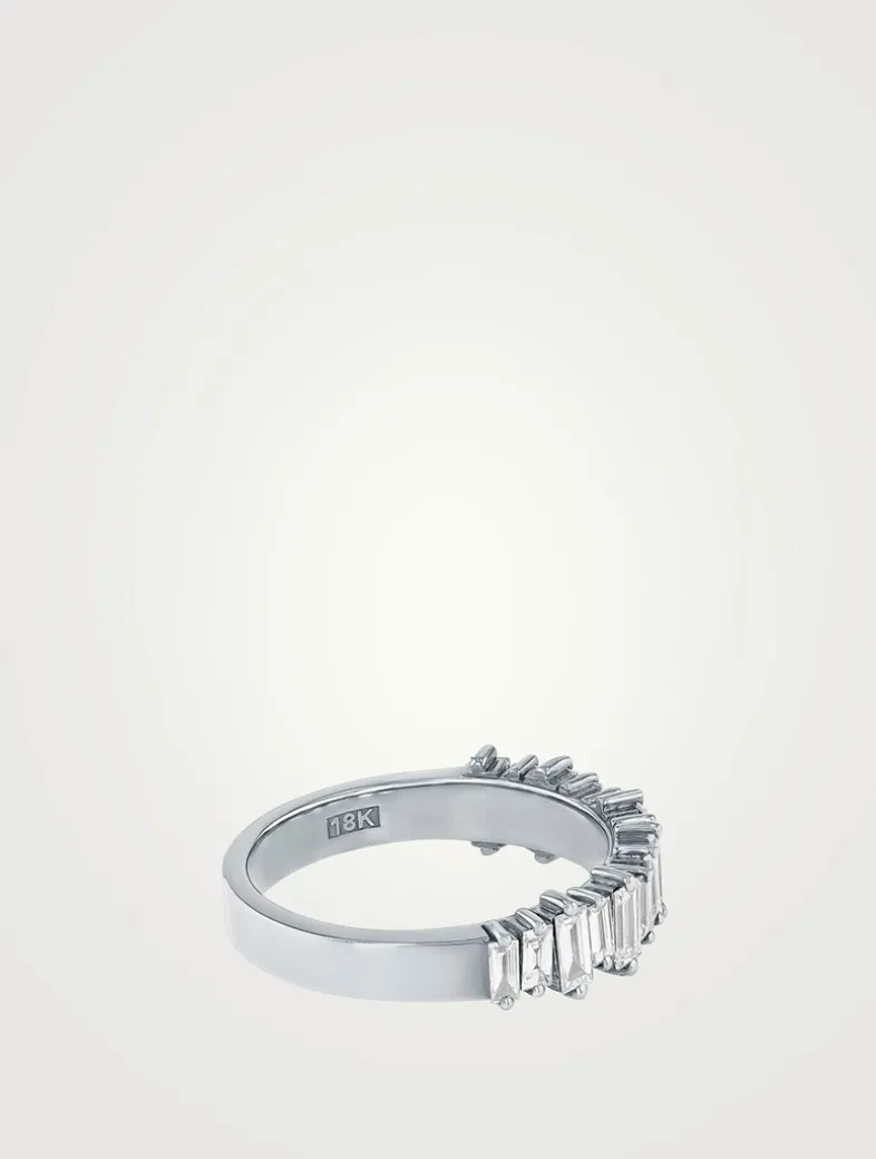 Suzanne Kalan is world-renowned for her unique use of baguette-cut gemstones. White diamond baguettes are set in her signature Fireworks design to create the classic silhouette of this band ring.