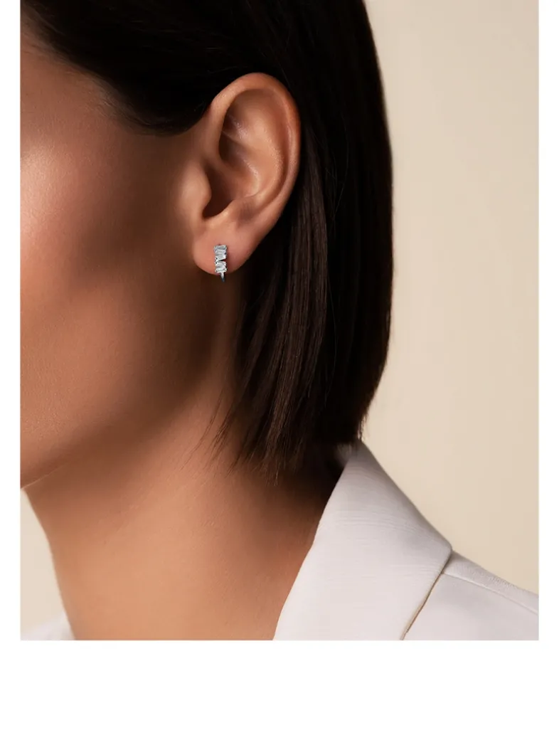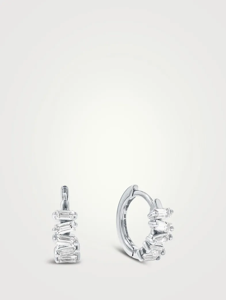 Crafted in 18k white gold, these huggies feature elegant baguette diamonds designed in Suzanne Kalan’s iconic style.