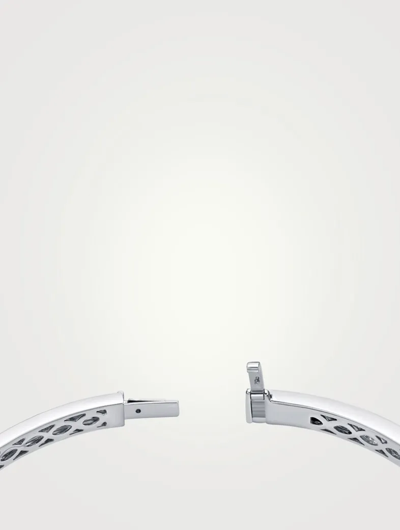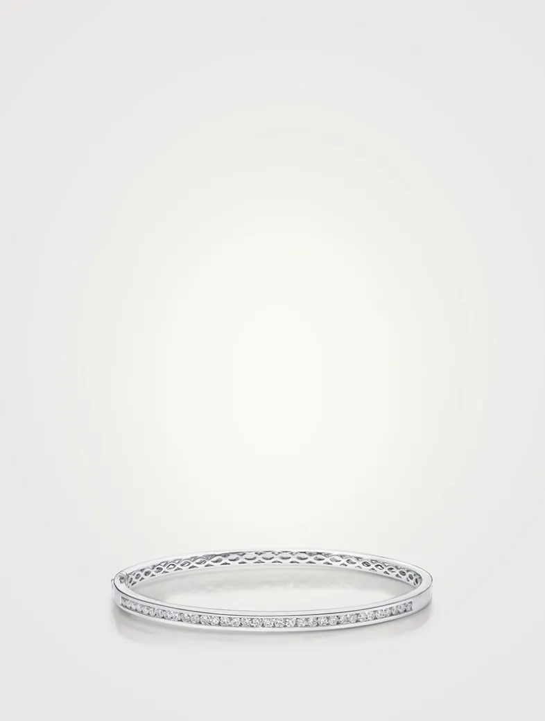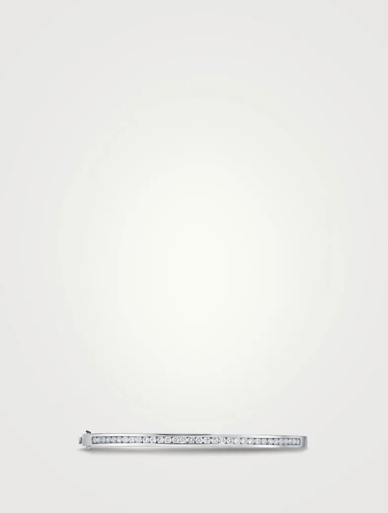 Made from 18k gold, this sleek bangle features sparkling round diamonds in a stunning channel setting.