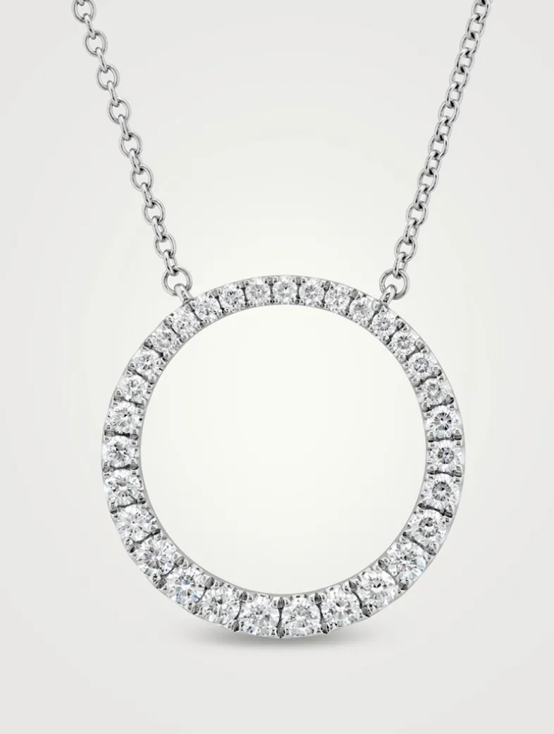 This chain necklace features a circular pendant set with graduating round diamonds.