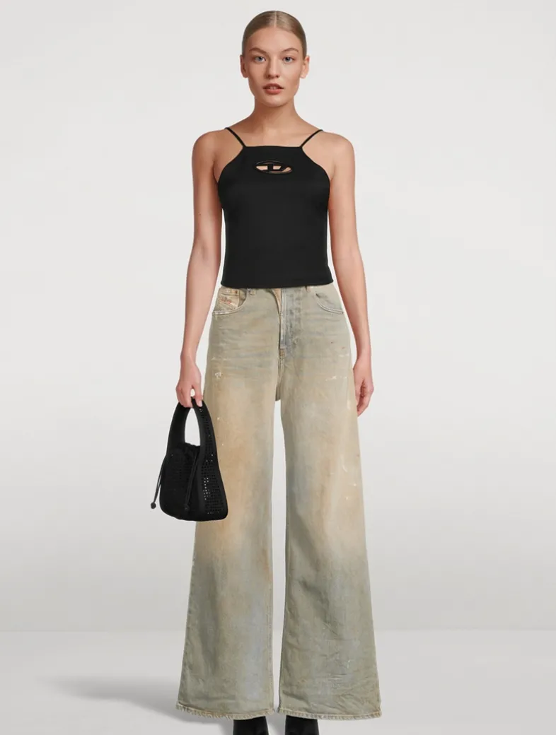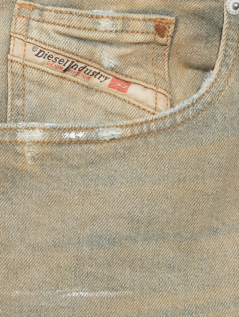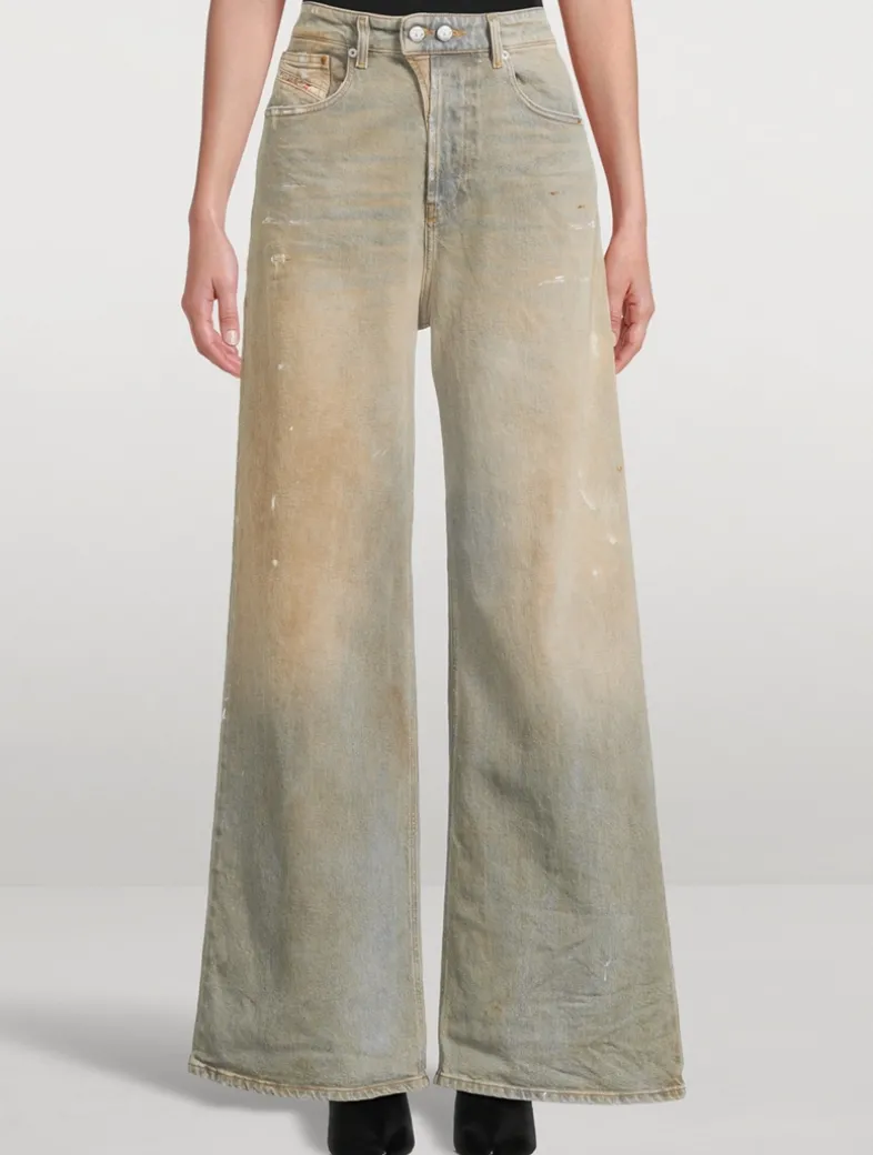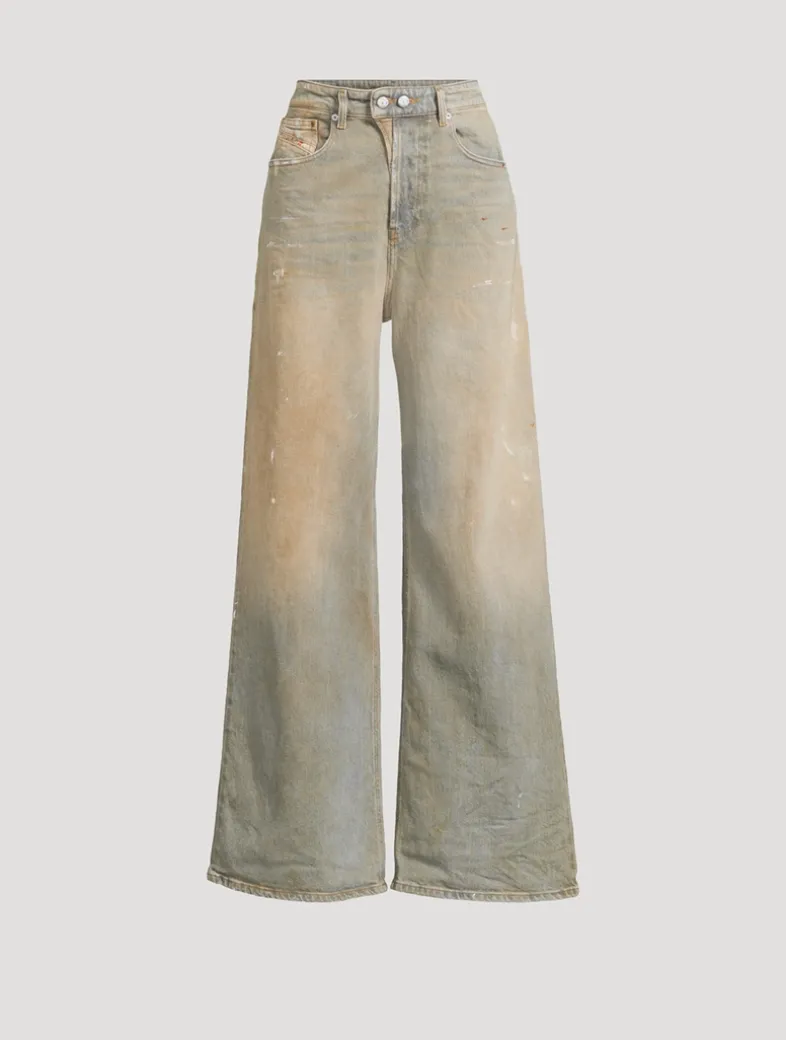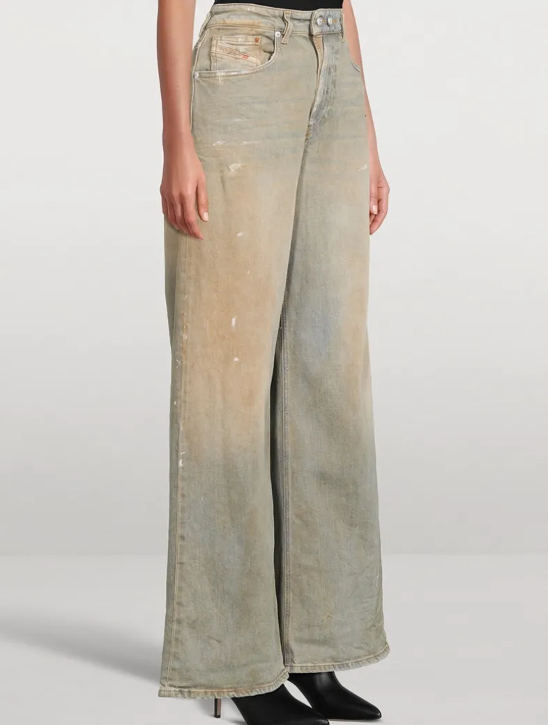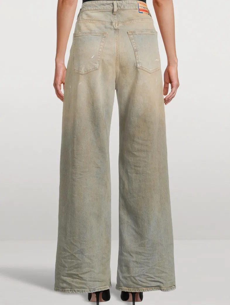These jeans have a relaxed fit with a low waist, low crotch, and extra-long wide leg. The loosest of the brand’s denim silhouettes, they are cut to make a drapey, oversized statement. Showcasing Diesel’s DNA, this wash is defined by vintage-inspired details. The fabric is crafted from cotton and hemp.